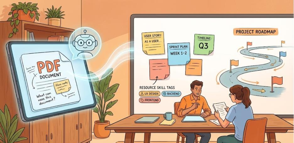 Another interesting phase was building an AI-based plan generation system. The idea was simple: upload a requirement document, and the agent would extract features, generate user stories, assign skill sets, estimate effort, and even propose sprint timelines.